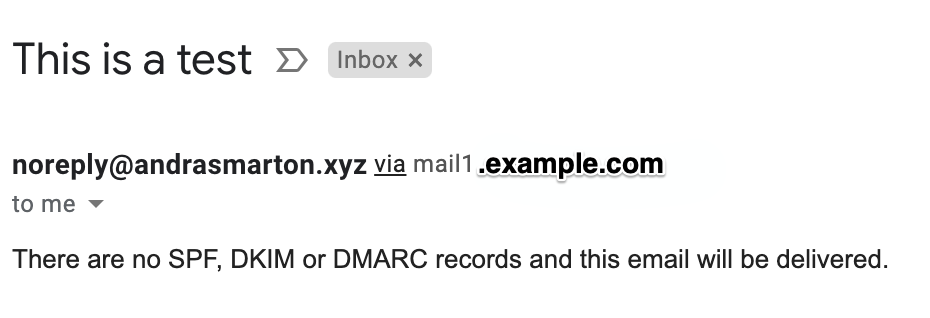 On the other hand, ProtonMail allowed the email through and delivered it, however adding a noticable banner, flagging the email as possible spam due to an authentication requirement. They provide additional information on this page: